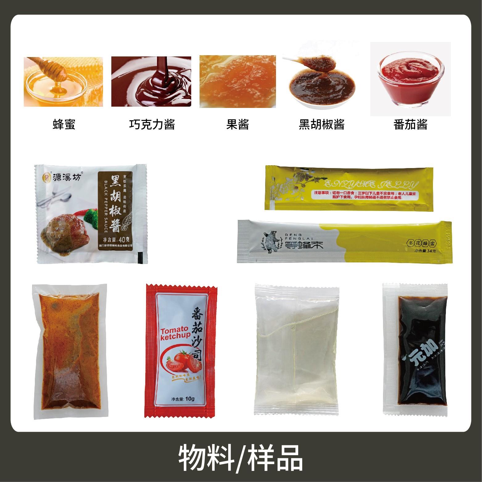 適用于食品、醫(yī)藥、化工、化妝品行業(yè)中液體、醬料物品的計(jì)量包裝,如:黑胡椒醬、辣椒醬、番茄醬等。